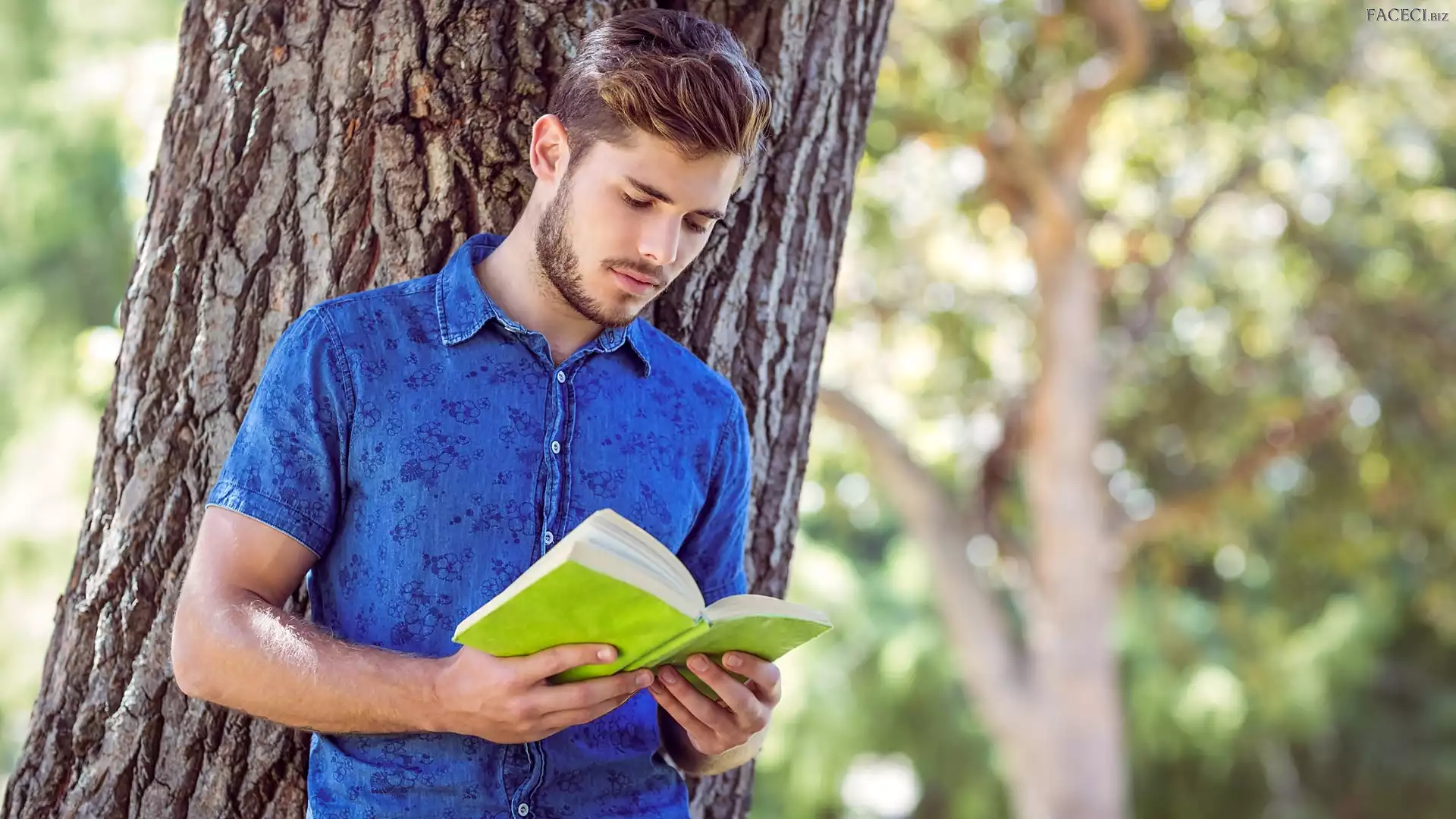 Drzewo, Koszula, Książka, Mężczyzna, Niebieska - faceci.biz